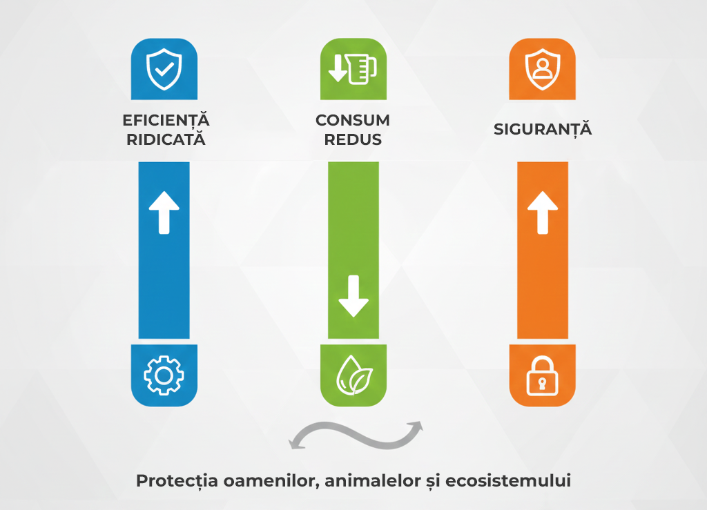 Utilizăm soluții moderne, aplicate în doze corecte și controlate, conforme cu standardele de siguranță și mediu. Alegerea produselor urmărește eficiența maximă cu un impact minim asupra mediului.